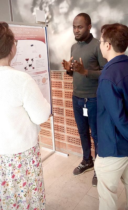 Arma presents his research about dilute alloys for carbon dioxide electroreduction. Bonaparte's results were also included and he was there to share his progress.