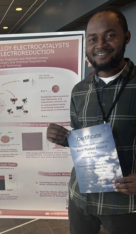 Congratulations to Arma for receiving the Best Poster Award from the Area of Advance Energy at their annual Network Day.